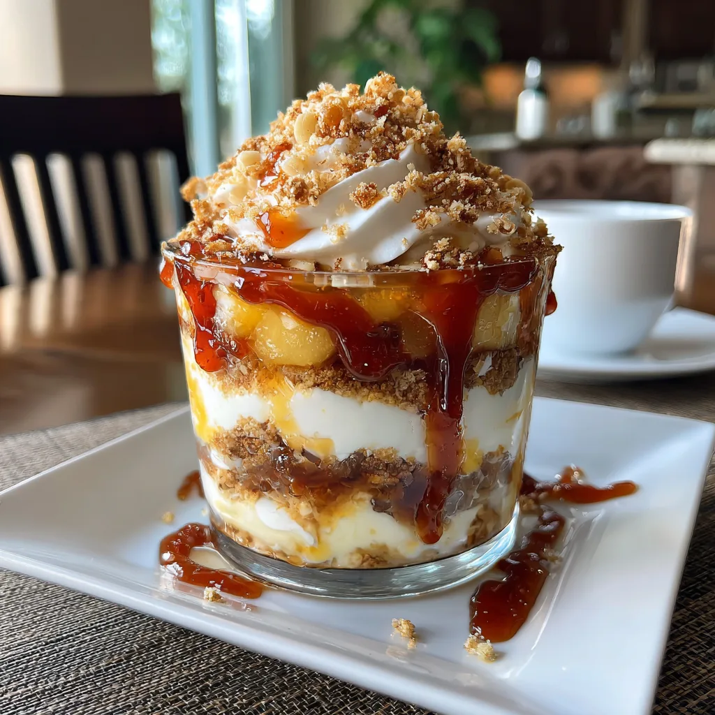 A delightful and healthy breakfast option that combines the flavors of apple pie with yogurt and granola.