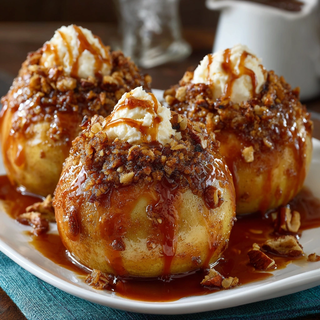 Baked Bloomin’ Apples are a delightful dessert that combines the crisp texture of fresh apples with a warm, gooey filling. Each bite offers a sweet explosion of cinnamon and caramel flavors, complemented by a creamy topping that melts in your mouth.