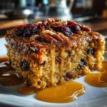 Next, pour the mixture into a greased baking dish. Spread it out evenly, making sure it’s nice and level. Pop it in the oven and bake for 30-35 minutes. You’ll know it’s ready when the top is golden and the oatmeal is set. The smell will be irresistible, and your family will start gathering in the kitchen!