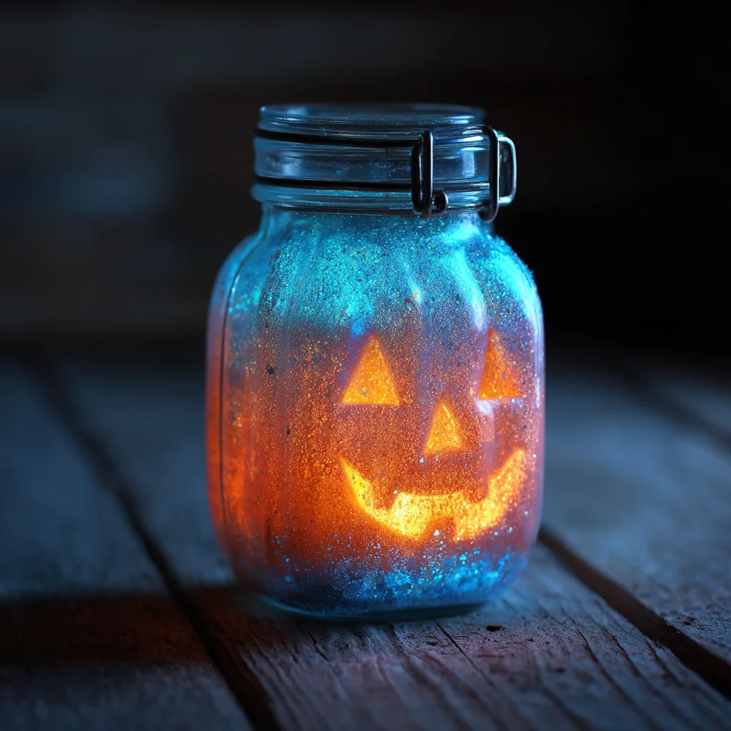 Watch the Magic: Step back and observe as the chemical reaction begins. Bubbles of carbon dioxide gas will form, forcing the glowing liquid to seep out through the carved features of the pumpkin, creating an eerie, fizzing glow that illuminates the entire jar.