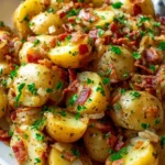 A heartwarming German potato salad made with tender potatoes, crispy bacon, and a sweet-tangy dressing.