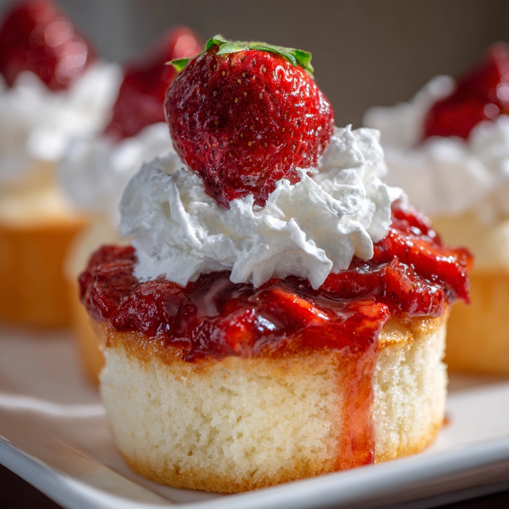 - Assemble Cupcakes: Once the cake is cool, cut it into cupcake-sized pieces, top with the strawberry mixture, and finish with a dollop of whipped cream.
