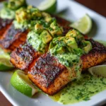 - Serve and Enjoy: Finally, it’s time to plate up! Serve the salmon topped with a generous dollop of your creamy avocado lime sauce. The vibrant green sauce against the golden salmon is not only visually appealing but also promises a burst of flavor with every bite!