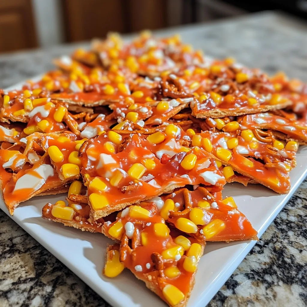 Keywords: Candy Corn, Pretzel Bark, Fall Treat, Halloween Dessert
