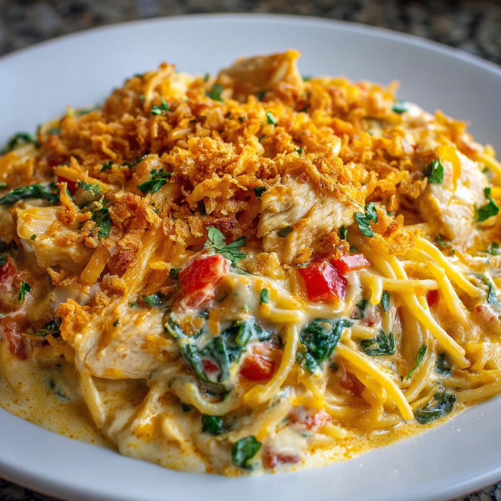Irresistible Spicy Southern Cheesy Chicken Spaghetti Casserole