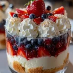 This Cheesecake Trifle Layered Red, White & Blue stands apart for so many reasons. For starters, the luscious blend of cream cheese and whipped cream creates a texture that feels indulgent yet light. Each time you dip your spoon into the dish, you uncover new layers—juicy strawberries laying beside sweet blueberries, each adding their own personality to this patriotic dessert. Whether enjoyed on the Fourth of July, a summer barbecue, or any celebration of life, this trifle dazzles and impresses, becoming the star of the show.