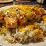 Keywords: Cheesy Green Chile Chicken & Rice, creamy chicken dish, green chile recipes, cheesy rice casserole, comfort food, easy dinner recipes, one-pot meals, Mexican-inspired dishes, chicken and rice, baked chicken recipes, cheesy casseroles, gluten-free meals, family-friendly recipes
