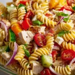 The sun casts a warm golden glow as summer approaches, beckoning outdoor gatherings filled with laughter, sunshine, and the delightful aroma of freshly prepared dishes. Among the vibrant platters on a picnic table, one dish gleams with promise: Chicken Pasta Salad. A captivating mosaic of flavors, this dish encapsulates everything we cherish about a warm-weather meal—light yet satisfying, refreshing yet nourishing. Each forkful transports you to a sun-drenched terrace where chatter rises and clinks of glasses ring in celebration.