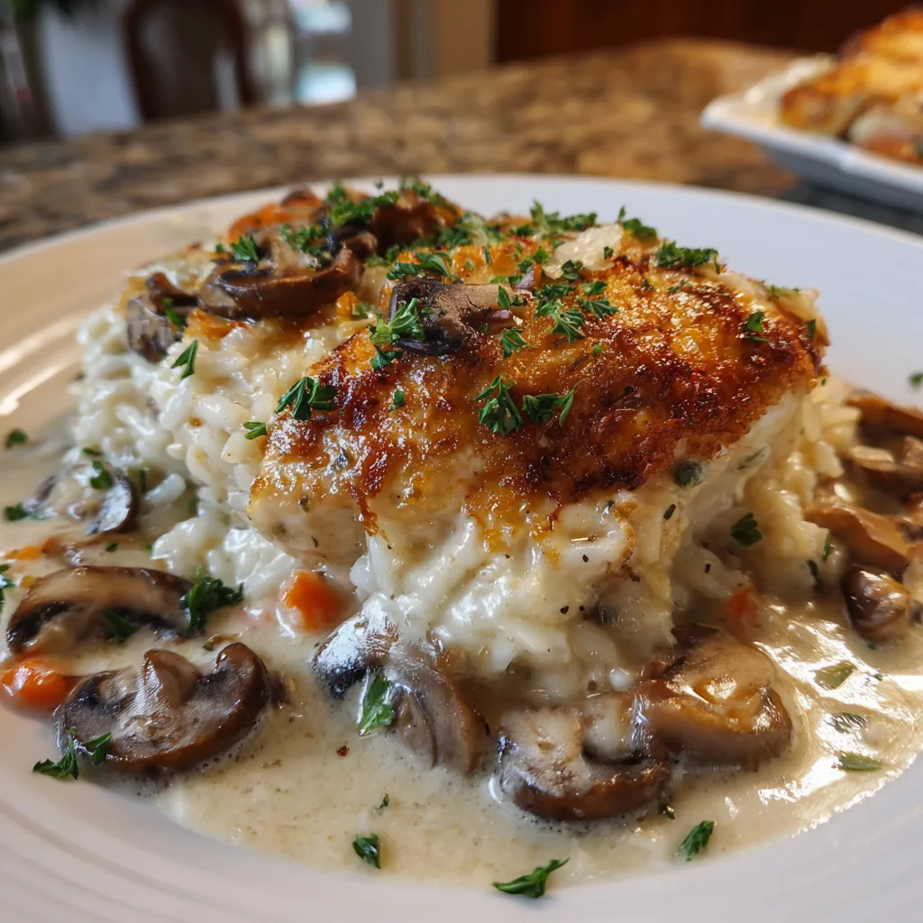 A comforting and delicious Chicken and Rice Casserole made with creamy mushroom soup, perfect for family dinners.