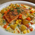Imagine a chilly evening, the kind that calls for something warm and comforting. As you step into your kitchen, the aroma of sautéed onions and garlic fills the air, mingling with the scent of fresh salmon and vibrant vegetables. This Cozy Salmon Chowder is not just a meal; it’s a hug in a bowl. Each spoonful envelops you in creamy goodness, with tender chunks of salmon swimming in a golden broth that warms your soul. This dish is perfect for family gatherings, cozy nights in, or when you simply need a comforting bowl of goodness. It’s a recipe that evokes memories of home, warmth, and love, making it an ideal choice for any occasion.