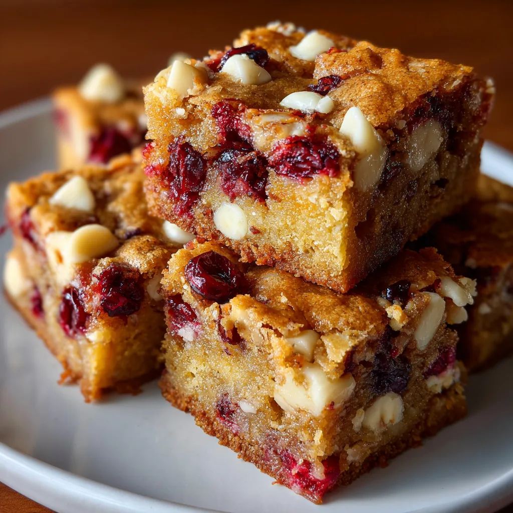 Cranberry White Chocolate Blondies are a deliciously sweet and chewy dessert that combines the tartness of cranberries with the creamy richness of white chocolate.