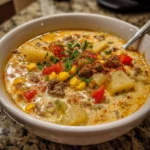 Keywords: Creamy Cowboy Soup Recipe, hearty soup, comfort food, easy soup recipe, creamy soup, cowboy soup, American cuisine, one-pot meal, family dinner, savory soup, winter recipes, quick meals, gluten-free soup, ground beef soup, vegetable soup