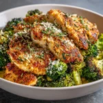 Imagine this: you walk into your kitchen, and the air is filled with the irresistible aroma of Garlic Parmesan Chicken & Roasted Broccoli Bowls. The golden-brown chicken, with its crispy Parmesan crust, glistens under the warm light, while the vibrant green roasted broccoli adds a pop of color that beckons you closer. As you take a deep breath, the rich scent of garlic dances around you, promising a meal that is not just food, but an experience.
