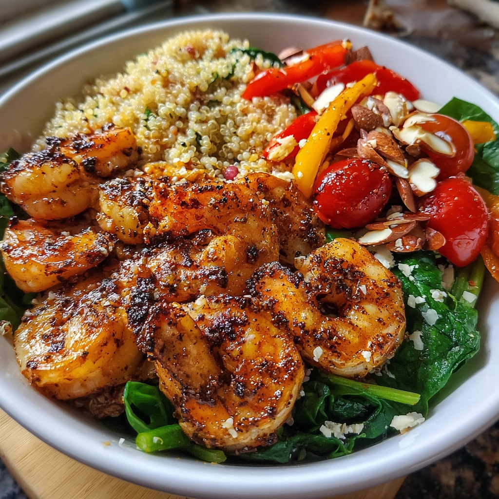 Imagine a vibrant bowl brimming with juicy grilled chicken and succulent shrimp, nestled atop a fluffy bed of quinoa. The colors of fresh bell peppers, cherry tomatoes, and spinach dance together, while the crunch of toasted almonds adds a delightful texture. Each bite is a symphony of flavors, from the smoky char of the grilled proteins to the refreshing crunch of vegetables. This dish is not just a meal; it’s a celebration of health and flavor, perfect for a family dinner, meal prep for the week, or a post-workout refuel. As I prepared this dish for the first time, the aroma wafting through my kitchen transported me back to summer barbecues, where good food and great company were the highlights of the day.
