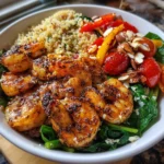 These High-Protein Chicken & Shrimp Power Bowls are a delightful combination of juicy grilled chicken and succulent shrimp, served over a bed of fluffy quinoa. The vibrant colors of fresh vegetables and the crunch of toasted nuts create a sensory experience that is both satisfying and nourishing.