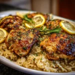 Keywords: Lemon Herb Chicken, Rice Bake, Chicken Recipe, Easy Dinner