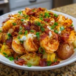 Keywords: Loaded Shrimp Bacon Potato Recipe, creamy potato dish, shrimp and bacon, comfort food, cheesy potatoes, baked shrimp recipe, easy dinner, hearty meal, American cuisine, gluten-free recipe, savory potato bake, shrimp recipes, bacon recipes, cheesy comfort food, loaded potatoes