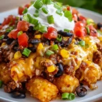 This dish transforms the humble tater tot into something extraordinary, elevating a nostalgic favorite to bold new heights. It’s not just a casserole; it’s a celebration on a plate, a fusion of Mexican flavors that takes weeknight cooking to a whole new level. As it bakes, the tater tots become perfectly golden, enveloped in melted cheese, while the rich ground meat and zesty salsa create a flavorful base. You find yourself reaching for more with every bite, each mouthful a reminder of home and togetherness.