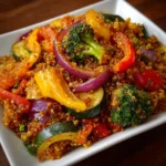Absolutely! If you’d like to add some protein, grilled chicken, shrimp, or even sautéed tofu would be excellent additions. Just cook the meat separately and serve it alongside or on top of the quinoa and vegetables for a hearty meal. - What’s the best way to reheat leftovers?