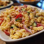 Imagine a vibrant bowl of Pink Cadillac Pasta Salad, where the creamy dressing glistens under the sunlight, inviting you to take a bite. The first forkful reveals a delightful medley of textures: the tender rotini pasta, the crisp crunch of fresh vegetables, and the sweet pop of cherry tomatoes. This dish is not just a feast for the eyes; it’s a celebration of flavors that dance on your palate. I remember the first time I made this salad for a summer picnic. As friends gathered around, the colorful bowl quickly became the star of the table, with everyone reaching for seconds. Whether it’s a backyard barbecue, a potluck, or a casual family dinner, this pasta salad is the perfect companion, bringing joy and satisfaction to any occasion.