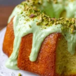 The aroma of warm cake wafts through the kitchen, mingling with the delicate scent of roasted pistachios, creating an atmosphere of comfort and anticipation. As the bundt cake cools, its golden-green exterior glistens softly in the light, hinting at the creamy sweetness waiting within. Each slice reveals a moist, tender crumb, speckled with crunchy pieces of pistachio, inviting you to indulge in its rich, nutty flavor. With each bite, a symphony of textures unfolds: the slight crunch of the nuts provides a delightful contrast to the cake’s velvety softness, while its sweet, nutty essence dances on the palate, making every morsel irresistibly satisfying.
