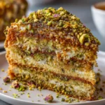 Keywords: Pistachio Rose Baklava Layer Cake, baklava cake, pistachio dessert, rosewater cake, Middle Eastern desserts, layered cake, creamy cake, nutty dessert, honey syrup cake, festive desserts, unique cake recipes, vegetarian desserts, indulgent cakes