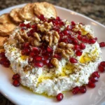 Keywords: Pomegranate Feta Cheese Dip, creamy dip, Mediterranean appetizer, feta cheese, Greek yogurt dip, healthy snack, party dip, vegetarian appetizer, pomegranate seeds, walnut topping, easy dip recipe, make-ahead dip