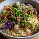 This dish is a personal favorite, often made during cozy weeknight dinners or when entertaining friends. The combination of textures—the tender noodles, juicy pork, and crisp slaw—creates a delightful contrast that keeps you coming back for more. Whether you’re celebrating a special occasion or simply indulging in a comforting meal after a long day, this noodle bowl is sure to satisfy your cravings and warm your heart.
