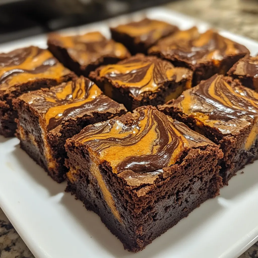 Deliciously rich brownies swirled with creamy caramel and pumpkin, perfect for fall.