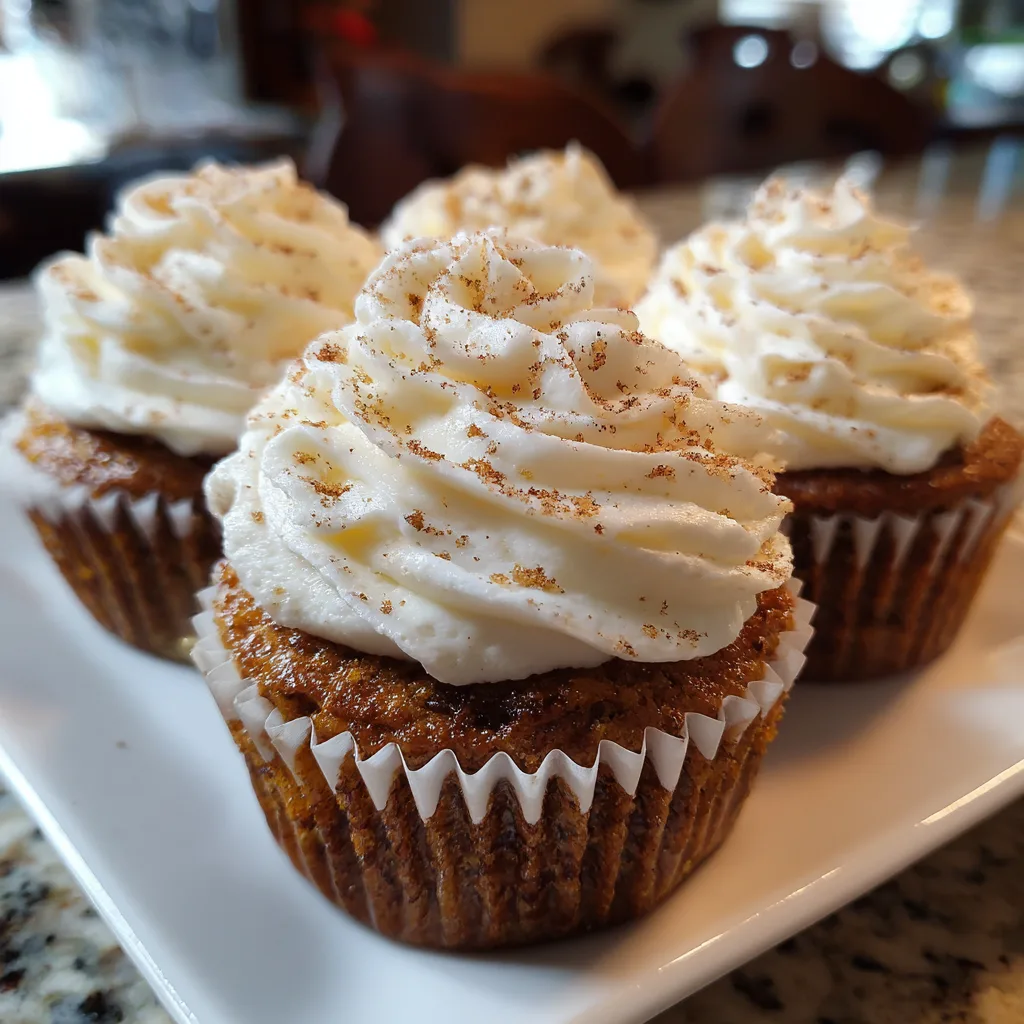 Deliciously moist pumpkin spice cupcakes topped with creamy and tangy cream cheese frosting, perfect for fall celebrations.