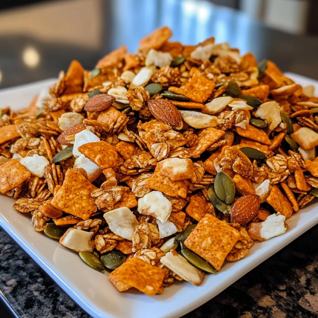 A delicious and healthy snack mix featuring the warm flavors of pumpkin spice, perfect for any time of the year.