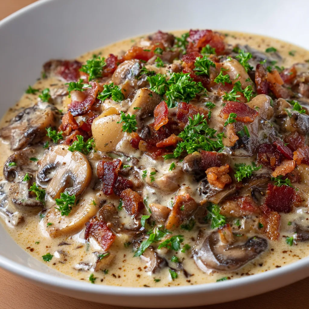 A rich and flavorful sauce made with cream and bacon, perfect for enhancing various dishes.