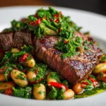 This dish holds a special place in my heart, as it reminds me of a memorable summer barbecue at my uncle’s house. The grill was fired up, laughter filled the air, and the aroma of sizzling steak wafted through the backyard. As we gathered around the table, the vibrant colors of the chimichurri and bean salad made the meal not just delicious but visually stunning. It was a moment of connection, where stories were shared, and memories were made over plates piled high with this delightful dish.