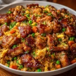 Keywords: Sticky Teriyaki Chicken Fried Rice Skillet, teriyaki chicken, fried rice, Asian cuisine, quick dinner, one-pan meal, easy recipe, chicken stir-fry, comfort food, weeknight dinner, savory dish, homemade teriyaki sauce, healthy meal