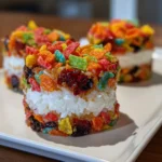 Keywords: Tasty Fruity Pebbles Sushi, sushi dessert, fruity sushi, colorful sushi, easy sushi recipe, no-fish sushi, sweet sushi, Fruity Pebbles recipe, fun sushi, kid-friendly sushi, dessert sushi, creative sushi, sushi rolls, fruity treats, colorful desserts
