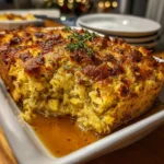 A delicious casserole that transforms your Thanksgiving leftovers into a hearty meal, featuring turkey and stuffing.