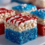 The USA Flag Dessert Rice Krispie Bars create a perfect synergy of flavors and colors, appealing to both palate and heart. With just a handful of simple ingredients, you whip up a sweets-laden delight that looks as fantastic as it tastes. The sweet, buttery base of Rice Krispies marries effortlessly with chewy marshmallows, culminating in an experience that offers both satisfaction and nostalgia with every bite.