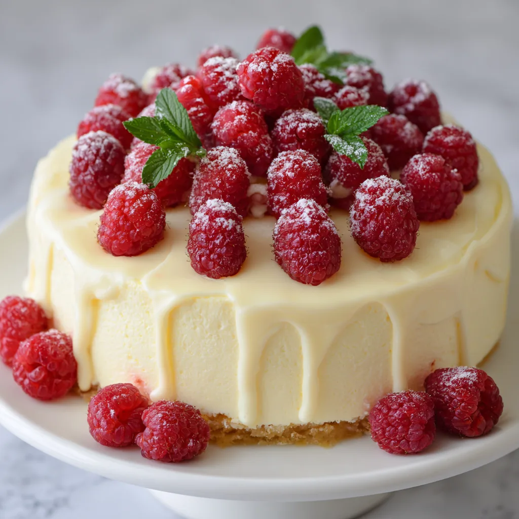 A rich and creamy white chocolate raspberry mousse cake that combines the sweetness of white chocolate with the tartness of fresh raspberries, creating a delightful dessert perfect for any occasion.